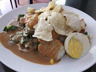 このころはスタッフとの会話も英語ではなくほとんどがインドネシア語で、雇用契約書やワーニングレターなどもインドネシア語で作っていたため、インドネシア語は飛躍的に上達していました。 インドネシア語の文法と発音が非常に易しいということと、日本語に似ている単語があったり、音が面白かったりで覚えやすいということもあったのですが・・・ 昔日本の兵隊さんがネシア語をおぼえるのに「めしはナシ、さかなはイカン、菓子はクエ、人はオランが、死ぬはマテ待て」などと七五調で覚えたそうです。 また大学時代に愛読していた筒井康隆の短編にガドガド(甘辛ピーナッツソースのサラダ)、ナシゴレン(焼き飯)、サテカンビン(ヤギの串焼)などインドネシア料理の名前を拝借した宇宙人が登場していましたが、聞くだけで笑ってしまうような単語ですね。