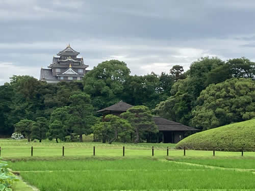 宇喜多秀家が築城した漆黒の岡山城(烏城)は改修中で入れず。