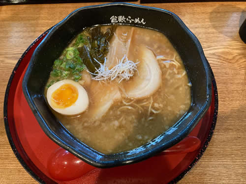 で、倉敷煮干ラーメン。 倉敷の食材にこだわった魚介と豚骨ベースのスープは美味しかったけど、豚骨はないほうがよかったなあ。