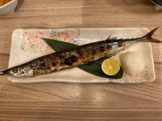 魚のおいしい店で、サンマの炭火焼きを注文。 今年はサンマが高い;