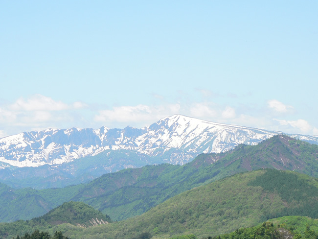 なっちヤン【2005.5.26up】 昨日南郷村の造林地より、浅草岳を撮影しました。天気がよく遠望できました。つまらない写真ですが。