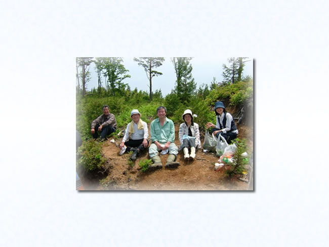 なっちヤン【2005.6.4up】 今日6月4日山菜取りを実施しました。天気は最高!!山菜も大変取れました。楽翁も大変満足かと思います。 記念写真及び楽翁と奥様の山菜取りの様子を送ります。