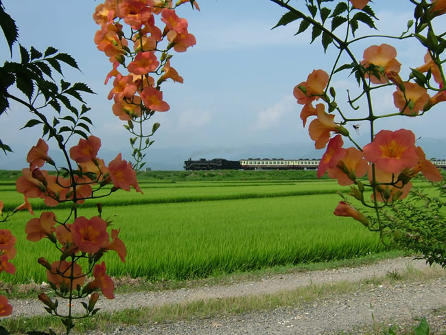 なっちヤン【2005.8.5up】 裏庭の「のうぜんかずら」とばんえつ物語号をとってみました。ではまた。