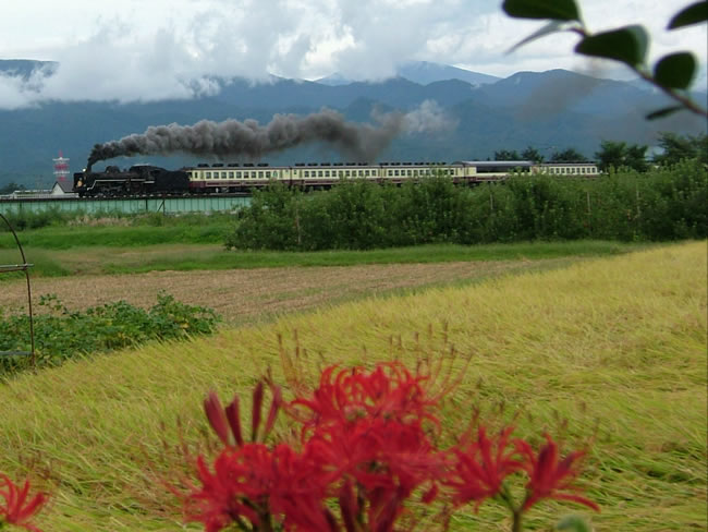 なっちヤン【2005.10.12up】 10月になりました。 遅れましたが、 「ばんえつ物語号」in彼岸花を送ります。