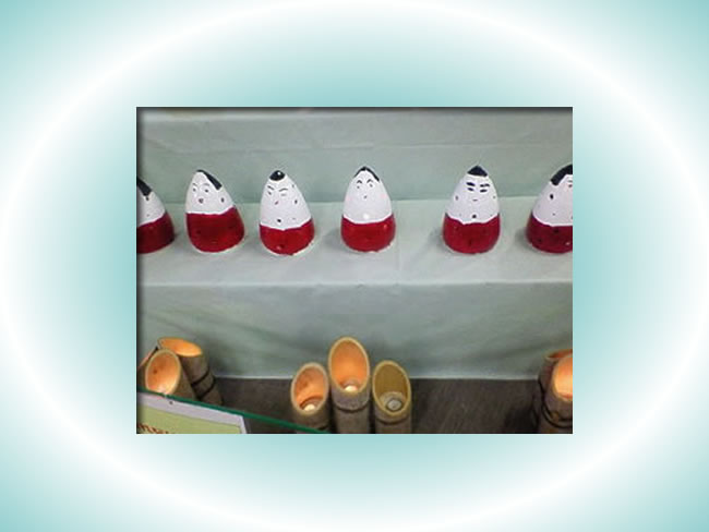 なっちヤン【2007.2.20up】 やーしばらくです。会津若松で行われた「絵蝋燭祭り」に協賛し、駅にあった「起き上がり小法師」の写真。起き上がり小法師の中に、ろうそくが燃えていました。