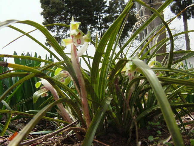 先に送ったスイセンと一緒に、我が家の庭に咲いたシュンランです。