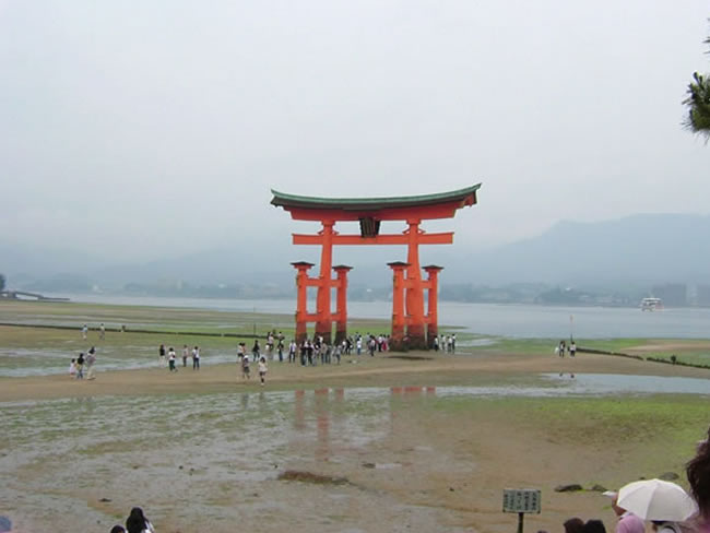 なっちヤン【2008.7.14up】 安芸の宮島にある厳島神社の大鳥居です。松島などと一緒に、日本三景の一つになっていますね。(もう一つはどこだったかな?)