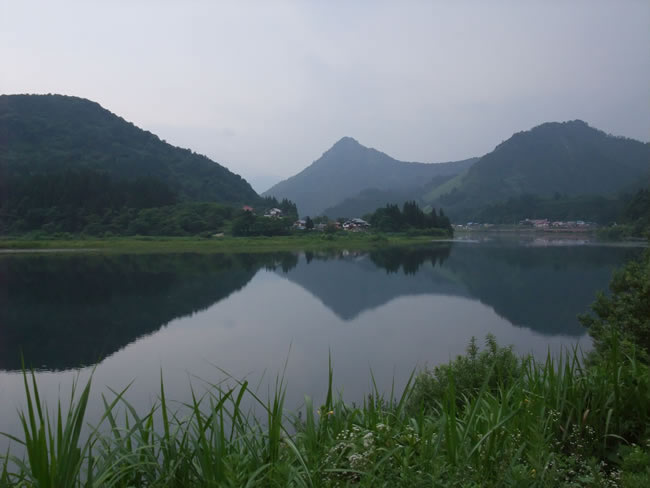 葉羽 写真の中央・奥が南会津只見町にある蒲生岳です。この尖がった姿、どっかの山に似ていませんか?