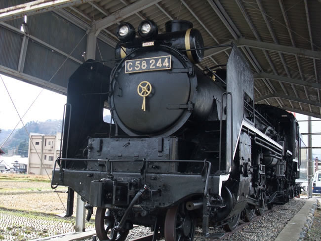 葉羽 このC58244号は、南会津郡只見町の役場前に展示されている保存車両です。なんでも1940年に、川崎車両で生産された車両だそうです。かつて、只見線を運行していた機関車であることは言うまでもありません。