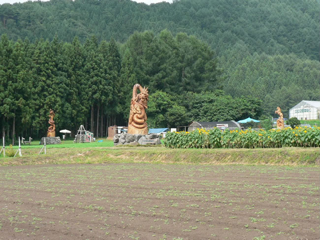 葉羽 リステル猪苗代スキー場のリステル・パークに巨大な木彫りの龍がお目見え。これは、カナダの有名チェーンソー彫刻家グレン・グリーンサイドさんが挑戦している干支彫刻12年プロジェクトの一環。龍(タツ)はなかなか迫力ありますね。