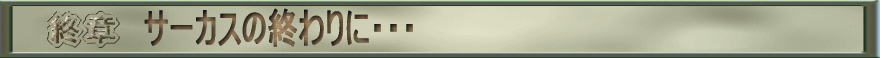【2005.11.16】 あれぇ・・・・・・・ なんだか・・・ 心がスカスカだぁ!!! ![]() 「サーカスの終わり」 音の出ない タンブリングを叩こう・・・ もう サーカスは 店じまい 風船も 売り切れたし・・・ オトギ話もなくなった! 灯りも消えた 朝の広場で・・・ へばりついた 思い出を・・・ 忘れようとしながら・・・・・・・ 僕のサーカスは 終わるのです!!! 笑えない ピエロ達よ! 朝の煙が 消えぬうちに・・・ 出ておいき この街を・・・ 僕が峠で 見てるから・・・ 音の出ない タンブリングを叩こう・・・ もう サーカスは 店じまい BY 西岡 恭蔵 IN 「ディランにて」 皆様、永らく御愛読有難う御座いました!!! 僕のサーカスに幕引きさせて頂きます。 なんだか、今は心が空っぽみたいな感じで・・・ キーボードが重く、感じられてしまうのです。 朱雀RS、しばし、冬眠させて頂きます。 あああぁ〜 勘違いするなよぉ〜 失恋じゃないからなぁ!!! そんなに永い時間じゃないさ!!! 僕は、きっと戻って来ます。 ちょっとだけ、空虚なだけなんだ・・・・・・・ ![]() 同じコンセプトで・・・ このホムペで・・・ 皆さん、また ’セカンド’でお会いしましょう!!! (FROM 朱雀RS) |