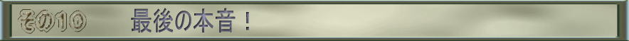 【2006.02.24】 はぁぁぁ〜会社に監禁状態だぁ〜 忙しいんだぞぉ!!! まるで、会社に住んでいるみたいだぁ! ったくぅ・・・2月ってやつぁ・・・・フンッ! いつもであればですね・・・ イヤダァァァァァ! と騒いだりですね! X’masと同様にですな、 うちは浄土真宗であるからして、 外人さんの風習なんぞは、ちょっとねぇ〜 などと申しておるところでありまするが・・・ 今年はちょっと違っておりまする。 なんたって、アアタ!!! 1000Kmもの彼方からですよ・・・なっなんとぉ〜 バレンタイン・カードが届いてしまいました!!! おおおおおぉ〜 一体全体、何年振りのことなんじゃぁぁぁぁぁ!? 小躍りしちゃったもの・・・やっぱし! えっ相手は誰かってぇ〜? はい、やっぱし・・・ヒ・ミ・ツ! この2月はなんか小躍りばかりしておりまする。 えっ!? 「義理でしょう!」ですとぉ〜 プンプン・・・ナニを言うぅ〜??? たかが’義理’で1000Kmも飛んで来るもんかいぃ!!! ”信ずる者は救われる!” いいの、僕は信じておりまする。 壁にピンで留めてある、 小さな写真取っておくれ 可愛い娘だろう!? アンタもきっと夢中になるさ! でもあの娘・・・オレから・・・ 遥か彼方、1000Kmも遠くなんだ! (イケネッ、写真なんて持ってなかったぁ〜) ハイ、大事件でありました。 大袈裟が過ぎてしまったようです! あいも変わらず、雪山に通っているのですが・・・ アスリートってさ、 立派な社会人や、正しい大人には決して出来ないと思うのです。 だってさ、スキーの達人ってみんな妙に子供っぽかったり、 思い切りスキー馬鹿のどちらかなんですよ・・・ たとえば、僕等はね、10種目を戦うのですが・・・ それぞれ30秒足らずで済んでしまうんです。 たかが5分間足らずの為に一年のほとんどを費やすのです!!! 仕事だって、費用を稼ぎ出す為にあったりします。 マトモな神経じゃぁ 出来ませんよねぇ??? 度々、「凄いですねぇ!?」って評価を受けるのですが・・・ ’いいえ、馬鹿なだけです!’って、答えることにしてます。 実際、レジャースキーヤーの数十年分を一年でこなします。 上手くなけりゃぁ・・・変でしょう・・・??? 結構大変な御バカなんですよぉ〜 でも、馬鹿になれる、居られるって 素敵なことなんだ!!!って思ってないとねぇ〜 やれないんですよ! シーズン半ばで、疲れちまったかなぁ・・・!? 先日、故郷でちょっとした寄り合いがありまして・・・ 同世代の人達とちょっとした格差・・・ ’差’じゃぁないなぁ??? ’違い’!? を感じてしまったのです。 まぁ、不良だったから、斜に構えて生きてたもんで・・・ 歪んだ価値観を持っているらしい事は確からしいのです。 ’自分の為だけに、生きてきたんだ!’ 「それは、シアワセだ!」 ああ・・・納得・・・シアワセなんだぁオレ!? でもぉ・・・それと満足とは、まるきし訳が違うだろう??? 今の僕には・・・これは難し過ぎるからいいんだ・・・ 先送り・・・ なによりショックだったのはですね、 とても大切な人がですね・・・・ 「アンタ子供のままね!」ですと・・・ ちょっと、ムッと来てしまったので、 「人妻は女じゃねぇ!」と 訳の判らない事を言って仕返ししたら・・・ 怒っちまったみたいで・・・ 正確に言うとですね・・・ 既婚者の方は、僕の彼女には成り得ないので、 女性として、見ちゃってはいけないんだよぉ〜 でした。 キミは少し丸くなったけれど・・・ まるで、少女の時みたいに カワユイままだよ!!! えっ、誰かってぇ〜 やっぱし、ヒ・ミ・ツ! 今度は、いつ口を聞いてもらえるのだろうかぁ??? ナニ、HPで言い訳してるんだろ・・・オレってば! きゃははははは・・・ シュン、グスグス・・・ 頑なに、大人になる事を拒み続けて来た! 大好きな言の葉”永遠の少年!”なんぞ気取って・・・ だから、一緒にいると子供でいられる相手が好きだ! S一なんか大好きだ! あははは、きっとお互いアホだからだろう! お互いにまともに話た事なんてない・・・ 締めて殴って蹴り入れて・・・ 会話は「バカヤロウ」と「アホォ〜」 で、ほとんどが済んでしまう。 真剣に感謝の時は、黙って握手が習慣! たまには、ちゃんと友好や感謝の言葉を言おう! 「このバカヤロウ、今、オレになんかワルサしてんだろう!?」って! 頑なに、大人になる事を拒み続けて来た! 大好きな言の葉”永遠の少年!”なんぞ気取って・・・ 「最後の本音!」 誰か教えて欲しい! オレの行くべきところ・・・ 導くオマエに光が見えたら かじりかけの林檎は そのままにしてるし すねたアイツは 背中でののしる 冗談さえも空しい様な そんな時には・・・ いつも心で叫んでいる! オレは決して悪い人間じゃない! ただ考えが甘いだけ 甘いだけ・・・ 猫なで声でオマエが問いかける言葉 とてもじゃないけど まっぴらゴメン 冷たいらしいよオレは・・・ 一言一言、言い訳すると・・・ 嘘になるのに・・・ 寒い気持ちで口ずさむ歌 そんな時には いつも飛び出す こんな言葉 追い詰められて どうしようもない そ