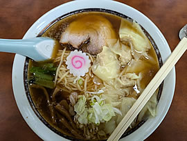 写真は、僕達のラーメン道2から飯坂温泉にある老舗食堂「保原屋食堂」のワンタン麺。間も無く創業百年を迎える名店の懐かしのお味とは? 新・僕達のラーメン道2「飯坂温泉・保原屋食堂」