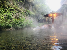 写真は、Storyスナップ「那須周遊/渓流露天風呂の旅」第八集より渓流露天風呂"大丸温泉旅館の夕食から「源泉しゃぶしゃぶ」。「源泉」が付くだけで美味しそうだ!