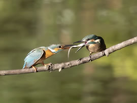 写真は、瞬間の魔術師T.sakumaの野鳥ギャラリーより、雛にエサを与えるカワセミのお母さん。その後間も無く巣立ちをして、今年の子育ては終了しました。