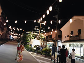 写真は、「人生カルタ」の「え」の札、ちぃなさんの「縁台から遠く聞こゆ」の背景画像で、大和伸一撮影の「岳温泉観光仮想盆踊り」。夏祭りの場末の風景は伸一の好みのようです。