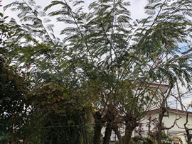 写真は、期間限定公開のSECRETより、我が家の庭の女王様こと巨大合歓の木。あ~あ、またこの伸びた枝を切ってしまわなくっちゃ! 岸波通信SECRET「庭の冬支度」