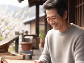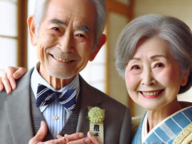 写真は、人生ノート「おじいちゃんのプロポーズ」の背景画像でAI生成した「古希夫婦」。誰もがなる可能性のある認知症。その時、アナタは?