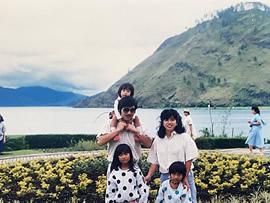 写真は、JUNの海外駐在員便りからジャカルタはスマトラ島での家族写真。この後、予想外に早い帰国命令が出て、さて子供たちの教育は? 海外駐在員便り「予想外の帰国命令」