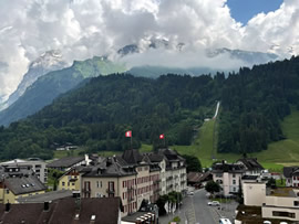 写真は、ミルクティーの「スイス旅行記」最終集よりエルゲンベルクのホテルの窓から見たティトリス山。さて、最後の宿泊地での晩餐は?