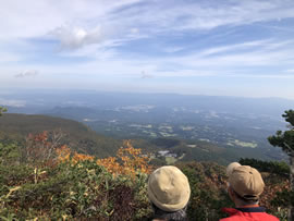 写真は、Storyスナップの新章「本当の空/錦秋・安達太良山の旅」からの一枚。ケイ子が安達太良山上空の「ほんとうの空」を指差しています♪ Storyスナップ「いざ安達太良山の巻」