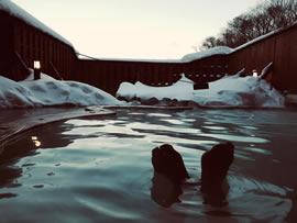 写真は、「人生カルタ」の"せ"の札で、大和伸一の「雪中露天風呂」の背景画像「伸一の足」。写真館で既出の画像ですが、これより良いモノは見つかりませんでした(笑) 人生カルタ「雪中露天風呂/大和伸一」