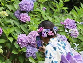 写真は、瞬間の魔術師T.sakumaの野鳥ギャラリーの年末恒例ベストショット・シリーズより6月のアジサイ。お嬢さんの髪飾りもアジサイ! 野鳥ギャラリー「2024ベストショット(4~6月)」