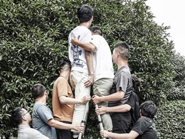 写真は、岸波通信「わが青春の『ハレンチ・コネクション』」より、刑務所での撮影を断られ、「塀の中は?」と覗き込む撮影隊(のイメージ)。さてどーする? 岸波通信「わが青春の『ハレンチ・コネクション』⑦」