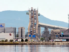写真は、葉羽のコーヒーブレイクから、鳥取・島根を繋ぐ江島大橋。コレ見て一目瞭然。今回は、世界の「坂」(急勾配)の話です。 葉羽のコーヒーブレイク「何だ坂 こんな坂」