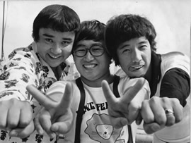 写真は、岸波通信の「興奮MAX『FFF』爆誕!」より。いよいよ開幕したイベントのトップで出演し、レッツゴー三匹のネタをやってみた(笑) 岸波通信「興奮MAX『FFF』爆誕!⑤」