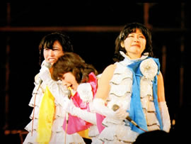 写真は、岸波通信の「興奮MAX『FFF』爆誕!」より。いよいよ開幕したイベントのトップで出演し、レッツゴー三匹のネタをやってみた(笑)
