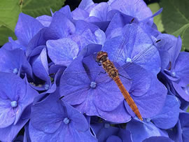 写真は、「大和伸一写真館」のエッセイ版からの一枚。このところの暑さにやられて少々元気がない伸一ですが、紫陽花の深い蒼に癒されているようで・・。