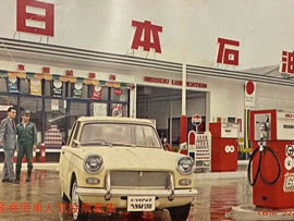 写真は、謎のおじさんアンブレラあつしの「風に吹かれて」より「昭和のGS」・・はい、今回はグループサウンズではなくガソリンスタンドの話です(笑)