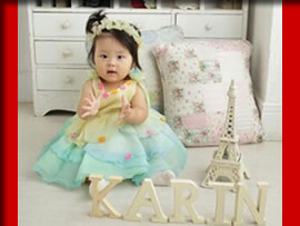 画像は「やよ☆のドキドキ育児生活」から、満一歳の記念撮影に臨むカリンちゃん。