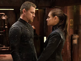 写真は、cinemaアラカルトその164「ジュピター」からチャニング・テイタムとミラ・クニスの出会いシーン。トイレ掃除のお姉さんが何故か地球の運命を担う事に。