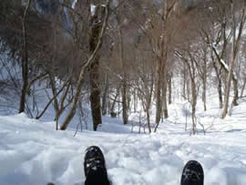 丸山芳子V〜発想の泉「冬の会津を体験するツアー」から、龍ノ山トレッキングで撮影された画像。始め“横”かと思ったら足下を写した一枚でした!