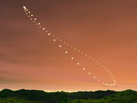 写真は、another world.Episode45「太陽のアナレンマ」で紹介している画像の一枚。毎日同じ時刻に撮影した太陽は無限∞の文字を描く!?