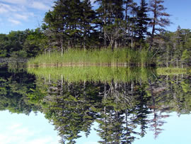 写真は、まめしばのフォト・ポエムその4「わすれないでいよう」から、世界遺産知床の美しい風景。どちらが空?どちらが湖?