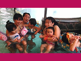 写真は、やよ☆のドキドキ育児生活その64「ハワイアンズ★」からスパリゾート・ハワイアンズでのダジィ一家。ダジィは完全にお疲れモードに入っています。