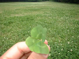 写真は、まめしばのポエム・エッセイその45「かぞえられるもの」の背景画像に用いた四葉のクローバー。うちの庭にもけっこうあります。
