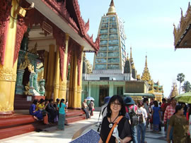 写真は、JUNの海外駐在員便りNEWS-26「ミャンマー便り」からシュエダゴン・パゴダ。写っているのはJUNの奥様(太太)です。 海外駐在員便り「ミャンマー便り」