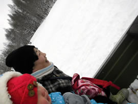 写真は、Storyスナップ第24集葉羽一家のワカサギ釣り1「Go to 檜原湖編」からケイコとオリカの氷上の大ジャンプ!しかも舟!何故!?