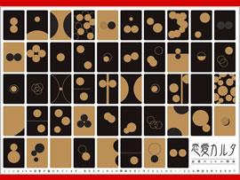 写真は、「恋愛カルタ-48の恋物語-」の全カルタ画像。会津漆の芸術祭における土屋多加史さんの展示に岸波通信プロジェクトが総協力したものです。 「恋愛カルタ-48の恋物語-」