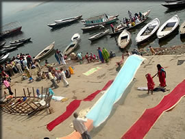 写真は、三枝子のインディア巡礼~美女二人旅~第6集「三枝子沐浴編」からの一枚。川岸の砂の上にそのまま干すんですね!