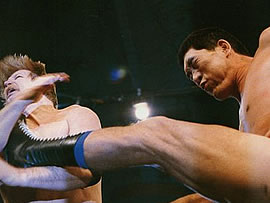 写真は、アンブレラあつしの風に吹かれてその47「夏がくれば思いだす。」の背景画像、ジャイアント馬場の16文キック。いや、懐かしいなぁ。