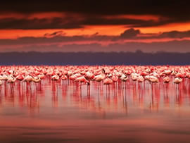 写真は、改稿した岸波通信その59「風に立つライオン」から百万羽のフラミンゴ。ケニアのナクル湖の風景より。
