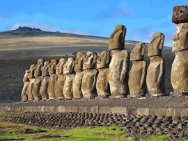 写真は、改稿した岸波通信その108「イースター・ミステリー」からの一枚。このモアイ像たちが見ていた方向は、実は…? 岸波通信「イースター・ミステリー」