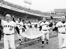 写真は、アンブレラあつしの風に吹かれてその64「毒吐く独白」の背景画像。懐かしいなぁジャイアンツのV9。