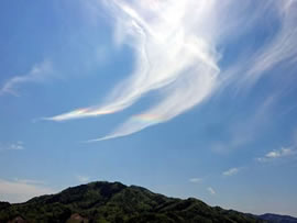 写真は、サオリの徒然なるママにその150「彩雲を見た日」から彩雲の画像。とある遺跡発掘現場を見学に行くと、空には♪ サオリの徒然ママ「彩雲を見た日」
