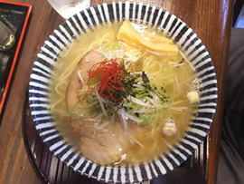 写真は、僕達のラーメン道その100「ラーメン工房/みそ伝」からの一枚。サオリがみそ伝ラーメンを食べて…。